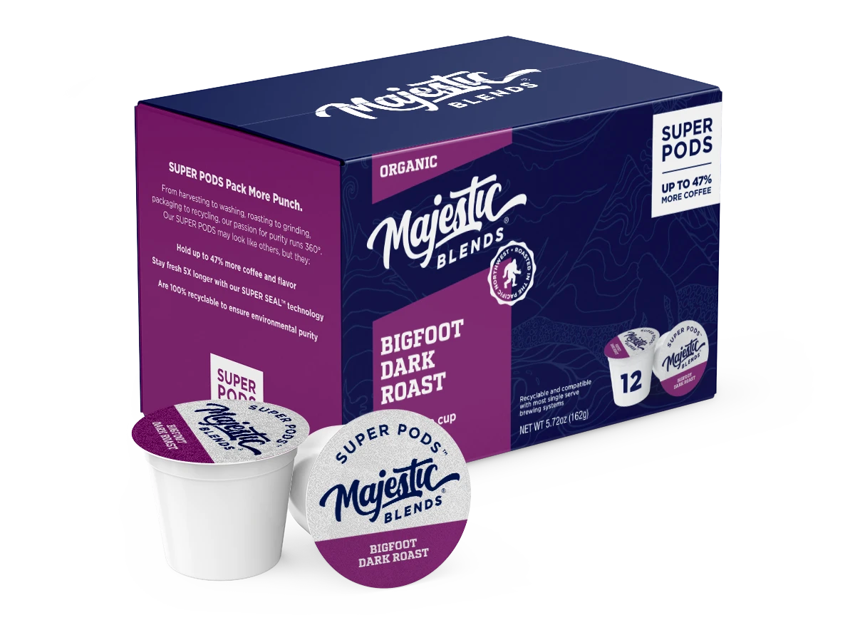 Majestic Blends® embodies the majesty of the Pacific Northwest—birthplace of craft coffee—where clear clean rivers, snow covered peaks and wild places are nothing short of American icons. Created in small batches, our coffee is roasted to perfection by passionate, experienced artisans using hand selected 100% Organic Arabica beans, sourced from sustainable farms the world over.